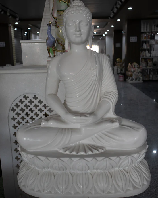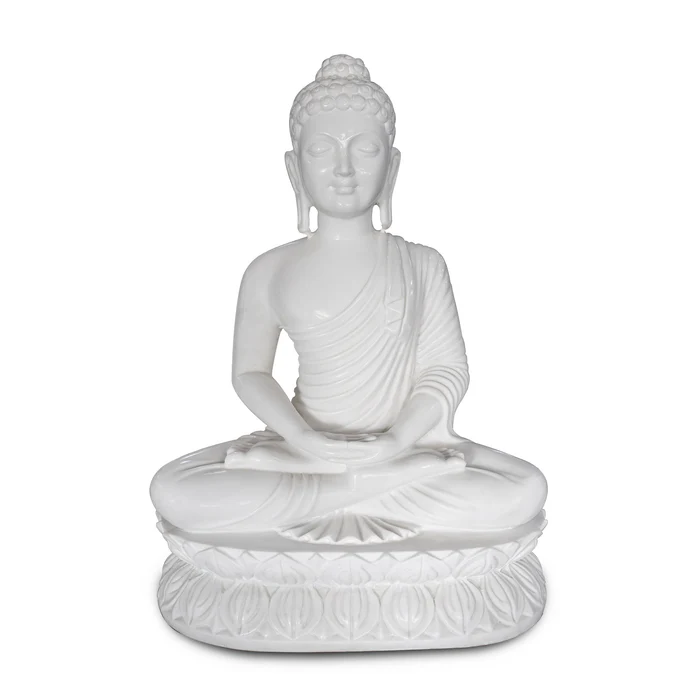 This exquisite 24 inch white marble Buddha statue will bring a timeless beauty and serenity to your home. Crafted to perfection, its detailed rendering is sure to be admired and appreciated. Add a touch of elegance to your décor with this exquisite marble statue.