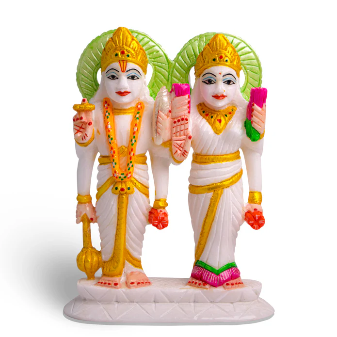 Make your home a shrine to the Hindu Gods with this stunning Vishnu and Laxmi White Marble Statue. Handcrafted from high-quality marble, this elegant sculpture will make a beautiful addition to any home or office. Its realistic details and intricate stone carving make it a timeless treasure that will last a lifetime.